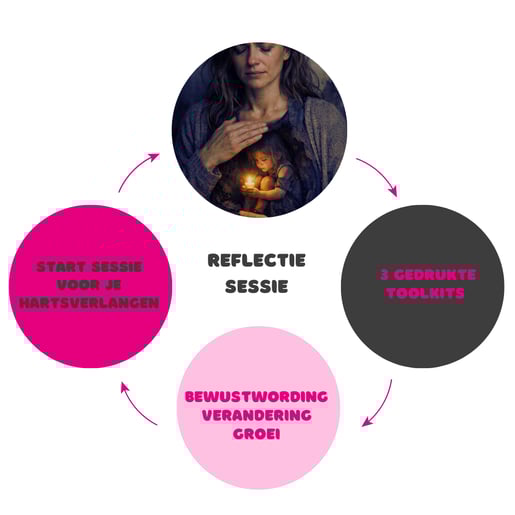 In deze reflectiesessie gaan we terug naar je hartsverlangen en daarna ga je aan de slag met de drie gedrukte toolkits thuis. Vanuit dat startpunt mag je gaan onderzoeken en voelen wat het met je doet. Gun jezelf een reflectiesessie en drie waardevolle gedrukte documenten