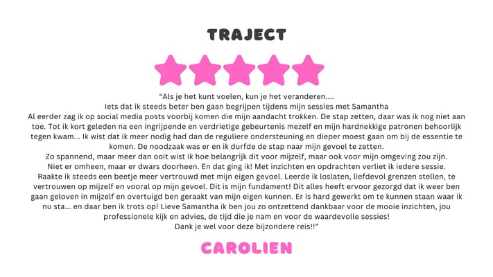 Het is een traject van bewustwording, inzicht en praktische verandering — in jouw tempo, persoonlijk afgestemd.