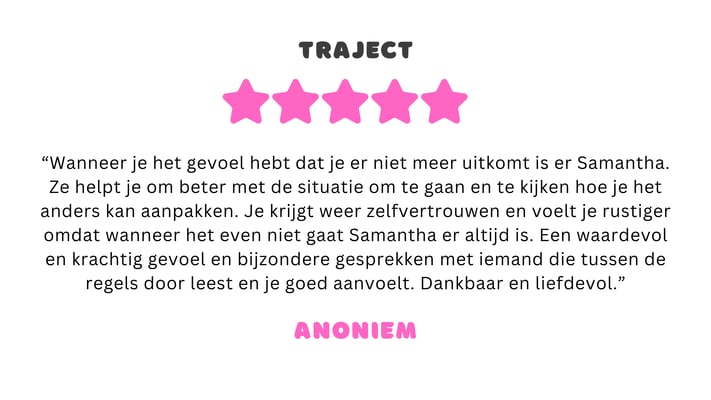 Je kunt via de online agenda inschrijven, maar kan je de startdatum niet dat is geen probleem, het traject is persoonlijk en op jou afgestemd. De datums worden na inschrijving volledig met jou afgestemd!